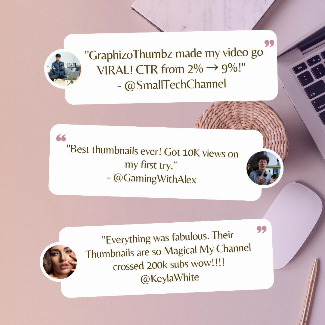 With 500+ thumbnails designed for 300+ YouTubers, we’ve helped channels of all sizes boost their CTR by 30-200%. Unlike generic designers, we focus on what actually makes viewers click – bold text, emotional faces, and viral-worthy compositions. Every thumbnail is custom-made for your niche and audience, with fast 24-hour delivery and unlimited revisions until you’re 100% happy. Whether you're a gaming streamer, tech reviewer, or faceless channel, we turn boring thumbnails into click magnets. Try us risk-free – your first design comes with a 100% satisfaction guarantee!